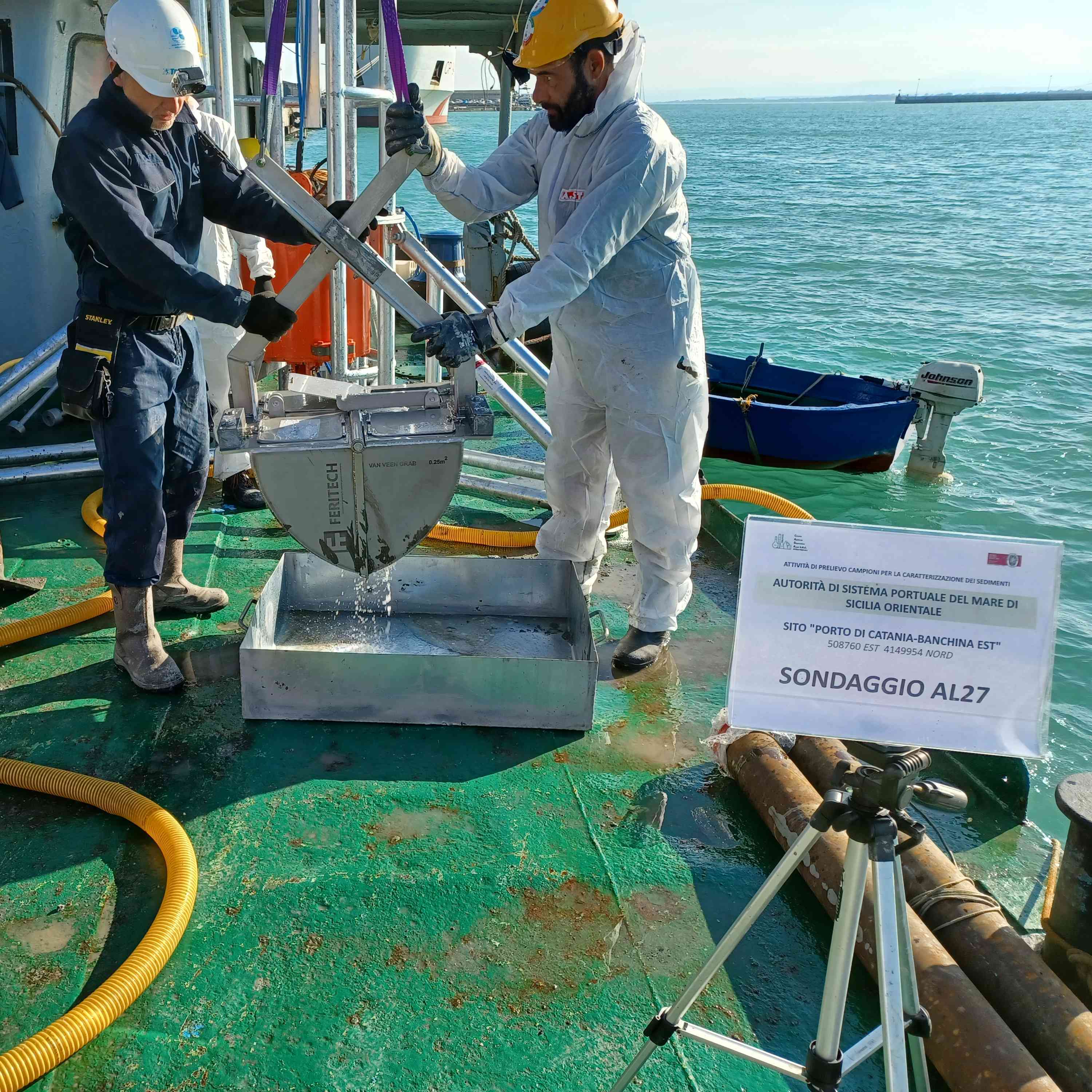 1. Prelievo dei sedimenti marini nelle aree di escavo con l’impiego di vibro-carotiere, carotiere ambientale a rotazione, benna di Van Veen e box corer;